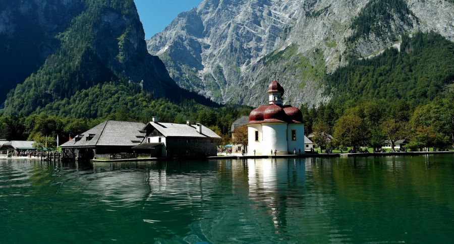 Nach dem Frühstück fahren wir zum Königssee. Die gewaltigen Felsen der Berchtesgadener Alpen fallen fast senkrecht zum Ufer hinab – der See misst an seiner tiefsten Stelle 192 Meter. Bei einer Schifffahrt zur malerischen Halbinsel St. Bartholomä genießen wir die beeindruckende Naturkulisse und das berühmte Echo. Auf dem Rückweg besuchen wir die Salzstadt Berchtesgaden und bummeln durch das historische Zentrum. In einem traditionellen Bräustüberl lassen wir uns eine zünftige Brettljause schmecken.